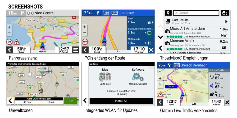ROUTENFÜHRUNG MIT UMWELTZONEN: Die updatefähige Europakarte beinhaltet Umweltzonen für eine zuverlässige und entspannte Navigation.