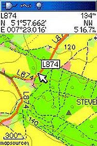 - Autorouting mit geeigneten (routingfähigen) MapSource? Kartenprodukten (Turn-by-Turn, auf Abbiegehinweise wird durch ein akustisches Signal hingewiesen, Anzeige im Display, jedoch keine Sprachausgabe).