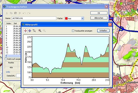 | Trackaufzeichnung: | Zeit, Distanz, automatisch, zusätzlich TracBack?-Funktion; max. 10.000 Punkte im aktiven Log. Trackaufzeichnung auch auf Speicherkarte |