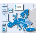 - Frankreich und Benelux-Länder: vollständige Abdeckung (Französisch-Guyana, Guadeloupe, Martinique, Réunion : Abdeckung für den Großteil der Stadtgebiete)