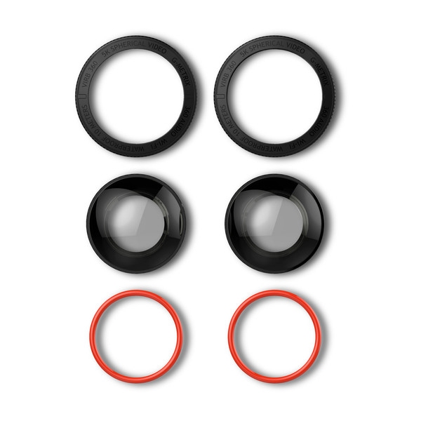 Wechseln Sie die Objektive der Garmin Virb 360 ohne Werkzeug in Sekundenschnelle aus. Dieses Kit enthält 2 äußere, verstärkte Glasobjektive, 2 Objektivringe und 2 Objektivdichtungen.