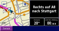 Sie haben nun folgende Möglichkeiten:3D-Kartendarstellung und Sprachausgabe leiten sicher zum Ziel. Dabei werden auf Wunsch sogar Straßennamen und Points of Interest namentlich mit angesagt (Text to Speech). In Orten mit dichtem Straßennetz oder auch bei Autobahnkreuzungen stellen egeanweisungen mit Nennung des Namens oder der Nummer der Straße, in die abgebogen werden soll, einen erheblichen Vorteil dar.