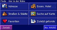- Zieleingabe über Koordinaten (Länge/Breite, mehrere Formate wählbar), ideal für Ziele außerorts, z.B. für Koordinaten aus Campingführern.