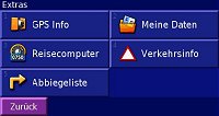 | Routen: | 50 automatisch berechnete Turn-by-Turn Routen. Zusätzlich können 250 Zwischenziele angegeben werden. |