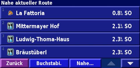 - Nächstgelegene Punkte zur berechneten Route: Bequem entlang der berechneten Route Tankstellen, Restaurants, Hotels, Sehenswürdigkeiten, Freizeitparks und andere Points of Interest finden und sich hinnavigieren lassen.