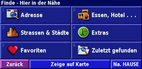 - Zieleingabe über Koordinaten (Länge/Breite, mehrere Formate wählbar), ideal für Ziele außerorts, z.B. für Koordinaten aus Campingführern.