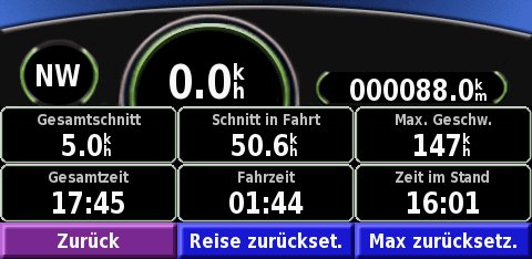 | Reisecomputer: | rückstellbarer Kilometerzähler, Durchschnitts- und Höchstgeschwindigkeit, Fahrzeit, Anzeige der Fahrtrichtung |