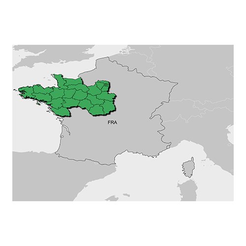 Die Abdeckung umfasst topografische Karten für Départements im Nordwesten Frankreichs: 14, 18, 22, 28, 29, 35, 36, 37, 41, 44, 45, 49, 50, 53, 56, 61, 72, 75, 77, 78, 85, 91, 92, 93, 94 und 95.