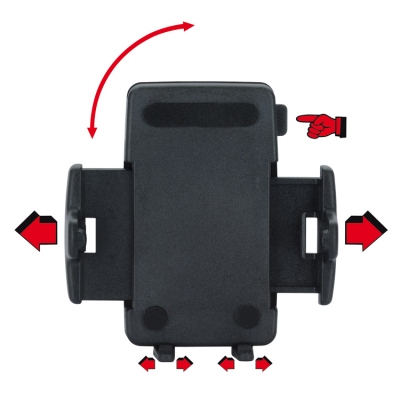 Das Design der Klemmbacken garantiert, dass Bedienungselemente am Gerät nicht in der Funktion beeinträchtigt werden. Smartphone einfach einlegen und seitliche Klemmbacken zusammendrücken, die Freigabe erfolgt auf Knopfdruck. Die Schutzbacken sind mit einer Moosgummipolsterung ausgestattet. Mit beweglichen Stegen am Unterteil ist der optimale Zugang zum Powerport Ihres Smartphones sichergestellt. Sollten Bedienungselemente Ihres Smartphones berührt werden können Sie die Stege herausnehmen oder den kompletten Halter drehen.