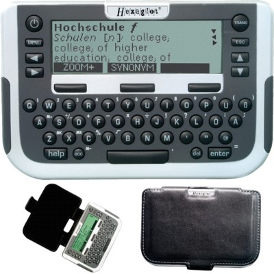 Sie haben nun folgende Möglichkeiten:Der Hexaglot TopTranslator multi ersetzt 20 Wörterbücher auf einmal: Der leistungsstarke Wörterbuch-Computer mit mehr als 8,3 Millionen Einträgen ist ideal für Reise, Business und Schule. Er bietet dem Benutzer eine solide Wörterbuchsubstanz in 5 Sprachen inkl. Wortformen, Synonymen sowie gastronomischem Spezialwortschatz.