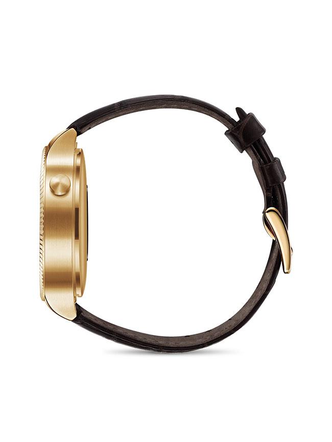 Die formvollendete Ausführung mit handpolierter Oberfläche zeigt jahrelange Uhrmacher-Erfahrung, eine Tradition, welche mithilfe innovativer und leistungsfähiger Materialien wie kratzfestes Saphirglas, Ultra-high-definition 1,4 Zoll AMOLED Display, kaltgeschmiedetes Edelstahl Gehäuse, Armbänder aus feinem Leder und Stahl eine zeitgemäße Interpretation erfährt.
