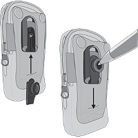 Der Clip lässt sich sehr gut und einfach am Gürtel befestigen. Die dazu passende PDA-Tasche kann gut durch einen einfachen Knopfdruck von oben gelöst werden. Also eine sinnvolle Gürtelbefestigung.