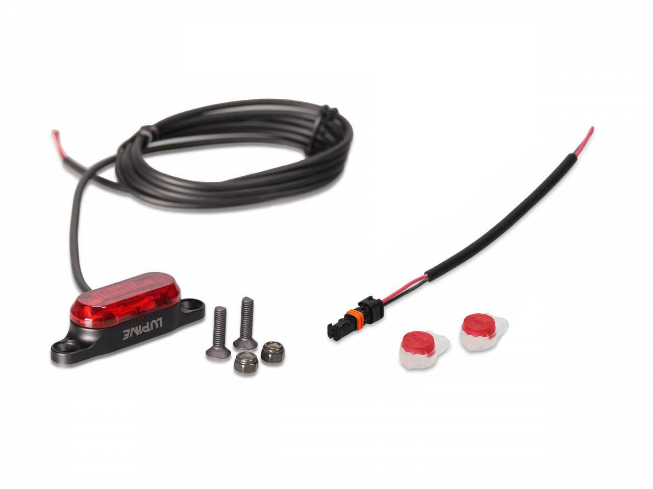 Das Lupine C14 G Rücklicht für E-Bikes als Gepäckträger-Version. Die mit 45 Lumen starke Rückleuchte besteht aus schwarz eloxiertem, CNC-gefrästem Aluminium, die Optik aus robustem Polycarbonat. Das Lupine C14 G ist schlagfest und wasserfest nach IPX6. Dank der neuesten COB Technologie und leistungsfähigen Fresnel-Linsen erreicht das Lupine C14 G eine rundum hohe Sichtbarkeit bei gleichzeitig reduzierter Blendwirkung. Die spezielle Anordnung der 14 LEDs und ein ausgeklügeltes Linsensystem schaffen zudem eine besonders homogene Leuchtcharakteristik. NEU: Rücklicht Version mit Bremslichtfunktion. Durch einen G-Sensor erkennt das Lupine C14 G, wenn gebremst wird und leuchtet kurzzeitig heller. Dieses Set beinhaltet das Lupine C14 G E-Bike Rücklicht + Rücklicht Kabel für Bosch Motoren. Hinweis: Nicht passend für Bosch Motoren mit smartem System (BES3), erkennbar u.a. über einen runden Lichtanschluß Stecker, Bosch LED Remote, Bosch System Controller mit farbigen LEDs oder Kompatibilität mit eBike Flow App. Für Bosch Motoren mit smartem System (BES3) wählen Sie die Lampenversionen mit Bosch BES3 Anschlußkabel.