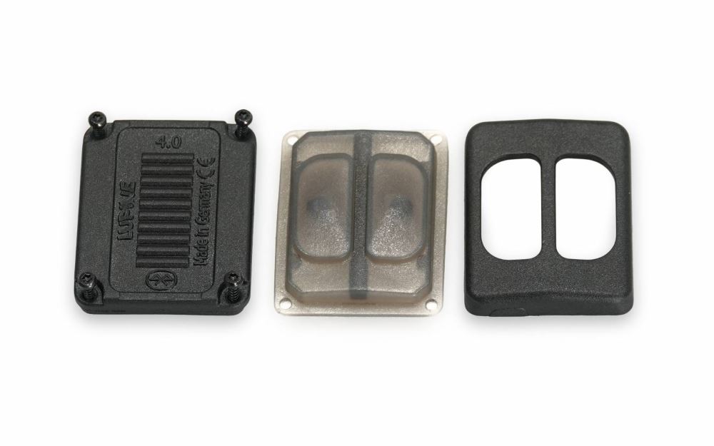 Lupine Ersatzteil Leergehäuse des 2-Wege-Tasters: Ober- und Unterteil samt Dichtung und Schrauben.