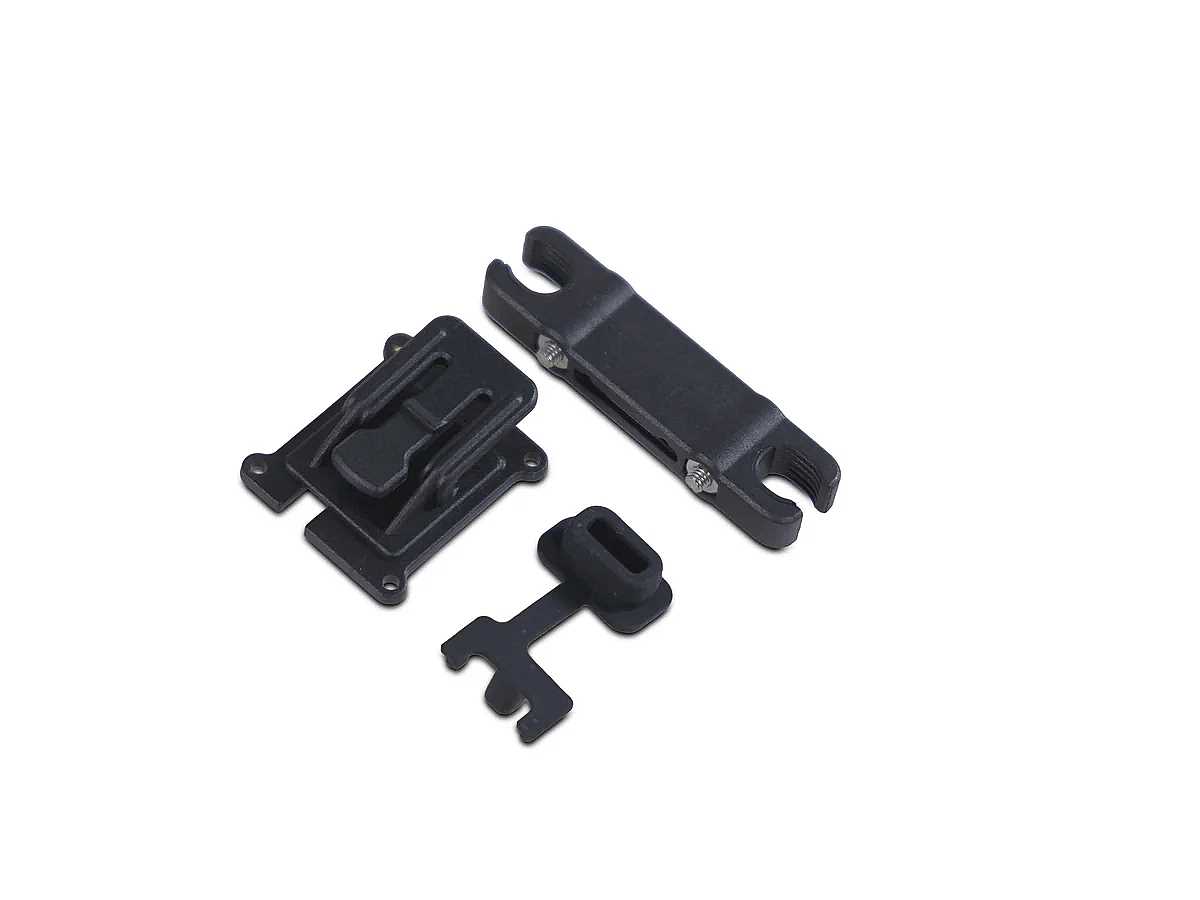Lupine Rotlicht Pro Sattelstrebenhalter (1099X) zur Montage des Lupine Rotlicht Pro Rücklicht direkt unter dem Fahrradsattel. Die spezielle Steckverbindung ermöglicht schnelles An- und Abnehmen des Rücklichts. Der Halter besteht aus dem Rotlicht Pro Rückteil, das am Gehäuse angeschraubt wird, und der Querstrebe, die fest zwischen den Sattelstreben montiert wird.