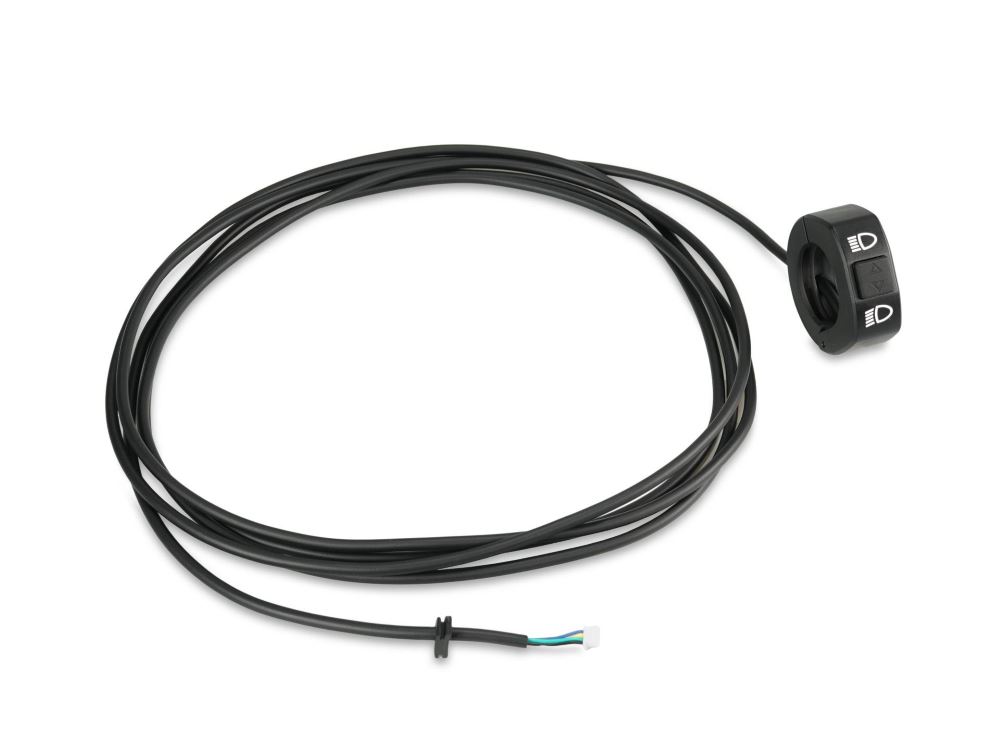 Lupine kabelgebundene Fernbedienung mit Fernlicht Taster in verschiedenen Längen für E-Bike Beleuchtungen Lupine SL F, SL X. Kabellänge gemessen von Lampe zu Fernbedienung. Die Breite der Fernbendienung liegt bei 14mm.