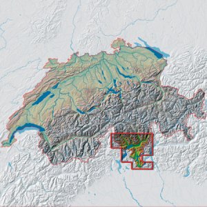 - Zusammenhängende (blattschnittfreie) topographische Karten im Maßstab 1:25.000 des Bundesamtes für Landestopografie