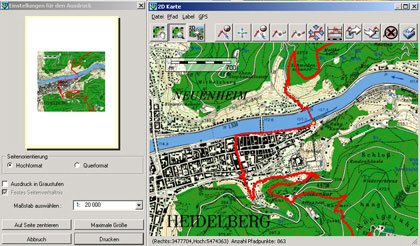 Die topografische Karten können im Maßstab 1:25.000 exakt ausgedruckt werden.