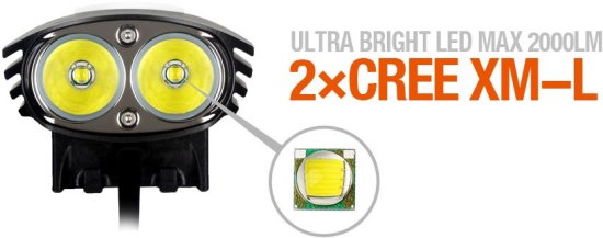• Lichtquellen : 2 x XM-L Chip mit 2 x 1000 Lumen
