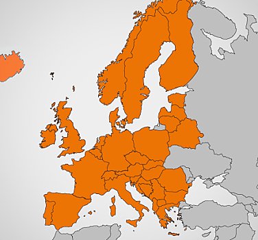 - Europakarte mit 41 Ländern