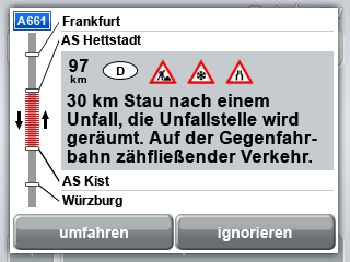 Die TMC-Funktion zeigt Ihnen Verkehrshindernisse und berechnet automatisch eine Ausweichroute um den Stau.