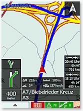 - Kartendarstellung mit realer Abbildung der Kreuzung und eingeblendeten Pfeilsymbolen sowie viele weitere individuell einstellbare Funktionen (Z.B. optionale 3D-Ansicht, Geschwindigkeitsanzeige, Kompass etc.)