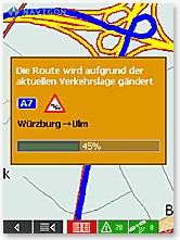 bestehenden Route ab und berechnet gegebenenfalls automatisch eine Alternativroute.