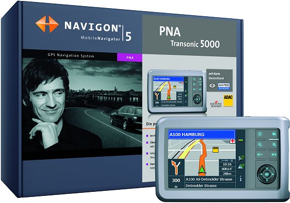 Navigon: PNA Transonic 5000, MobileNavigator 5 ADAC Navigationssoftware, Kartenmaterial von Europa, Deutschland auf Speicherkarte vorinstalliert, integriertes TMC-Modul für Stauumfahrung