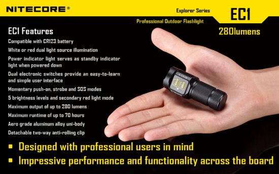 Nitecore EC1 - LED Taschenlampe mit 280 ANSI Lumen