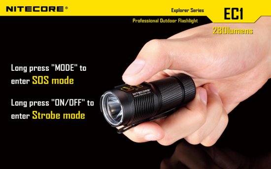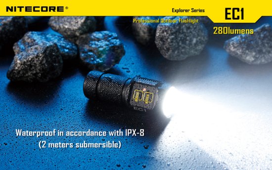 Sie haben nun folgende Möglichkeiten:Die Nitecore EC1 ist eine LED Taschenlampe mit 280 Lumen im ANSI/NEMA FL-1 Standard. Mit einer CR123 Batterie erreicht die Nitecore EC1 eine Laufzeit von bis zu 70 Stunden. Die LED Lampen der Explorer Serie verfügen über eine Batteriestandanzeige mit Notlichtfunktion. Durch die einfache Knopfbedienung am Lampenkopf der Nitecore EC1 kann man in die verschiedenen Modi schalten. Das Gehäuse der Nitecore EC1 besteht aus HAIII anodisierten Luftfahrt-Aluminium und ist Spritzwassergeschützt nach IPX-8.