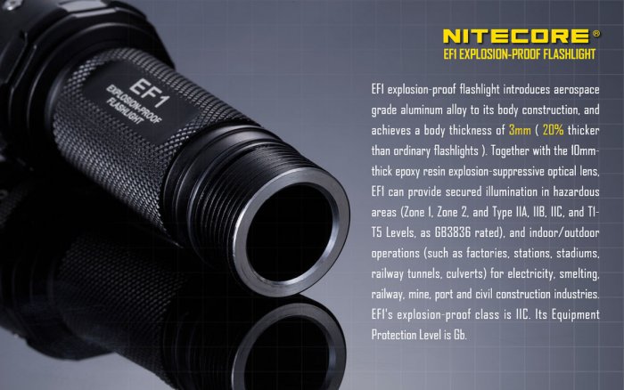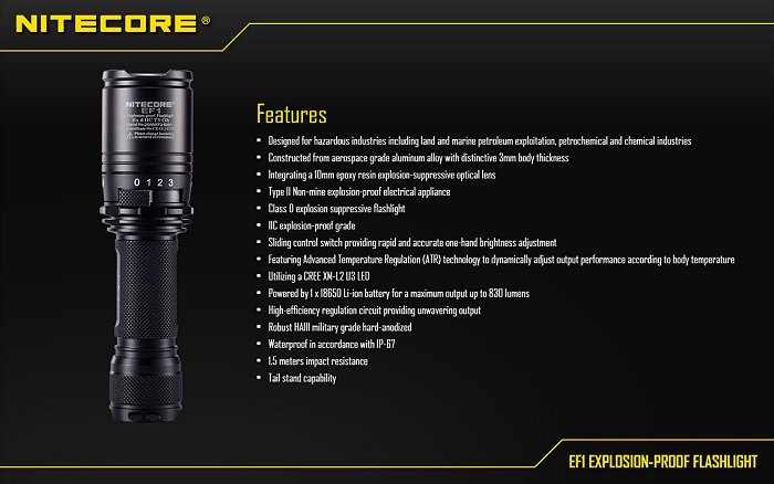 Nitecore EF1 - Ex-Schutz (PCEC/ATEX) LED Taschenlampe mit 830 Lumen inkl. zwei CR123A Batterien