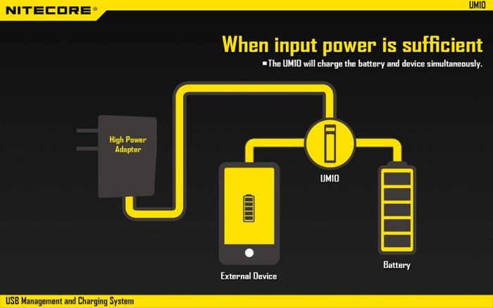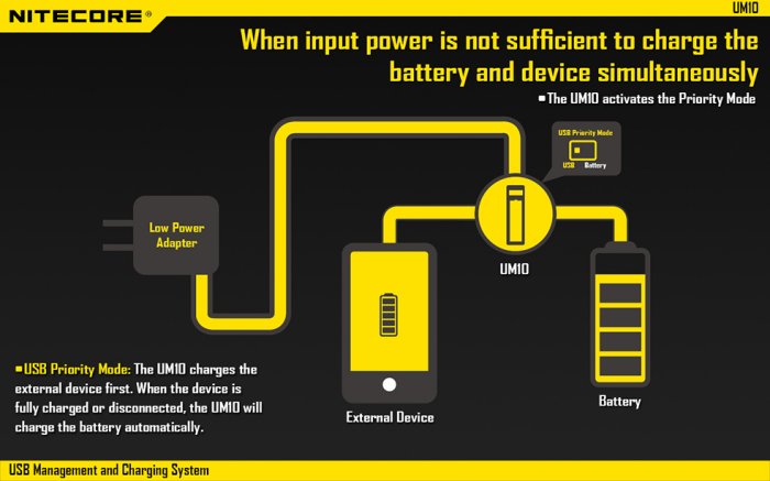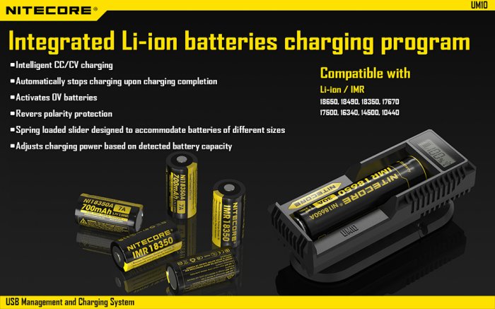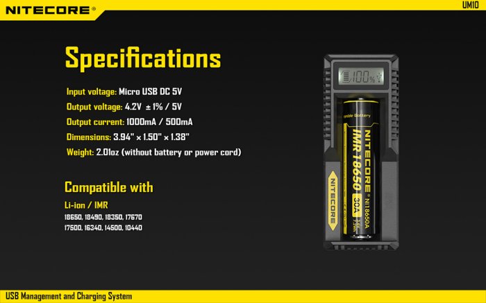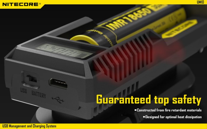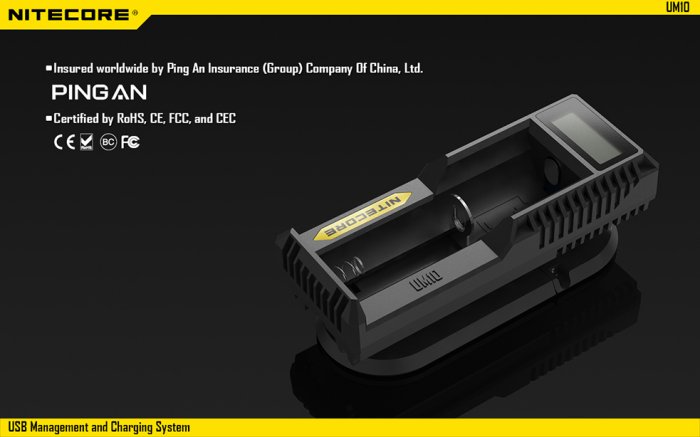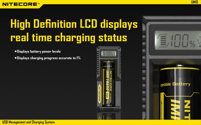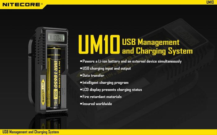 NiteCore UM10 USB Lader - 1-Schacht Ladegerät für Li-Ion / IMR Akkus und mobile Geräte