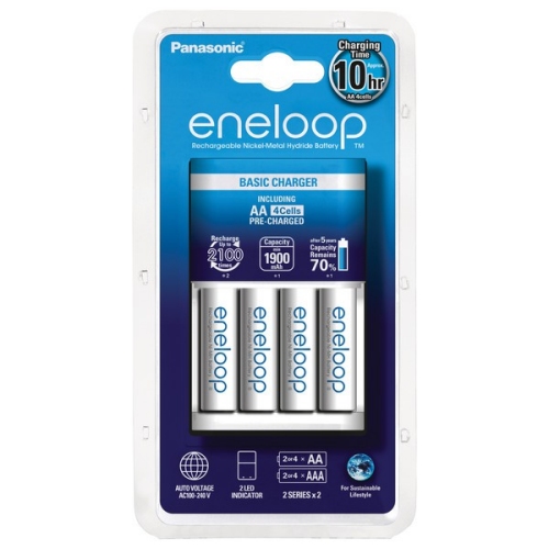 Das Akku Ladegerät Panasonic BQ-CC18 kann bis zu 4 Akkus wiederaufladen. Das langsame Laden mit Schwachstrom garantiert eine lange Lebensdauer der eneloop Akkus. Eneloop AA Akkus werden in ca. 10 Stunden schonend geladen. Im Lieferumfang enthalten ist das Panasonic Ladegerät BQ-CC18 sowie 4 eneloop Akkus mit 1900mAh.