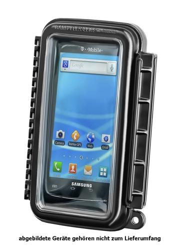 Die Ram Mount Aqua Box Gehäuse bieten besten Schutz vor Wasser und Schmutz für eine Reihe von elektronischen Handgeräten. Die Frontseite ist mit einer durchsichtigen dicken Folie versehen. An der unteren rechten Ecke befindet eine Vorrichtung zur Anbringung eines kleinen Schlosses (nicht im Lieferumfang enthalten). Die Rückseite ist vorbereitet zur Aufnahme einer runden Basisplatte.Innenabmessungen: 6,05 x 11,76 x 2,87 cm.