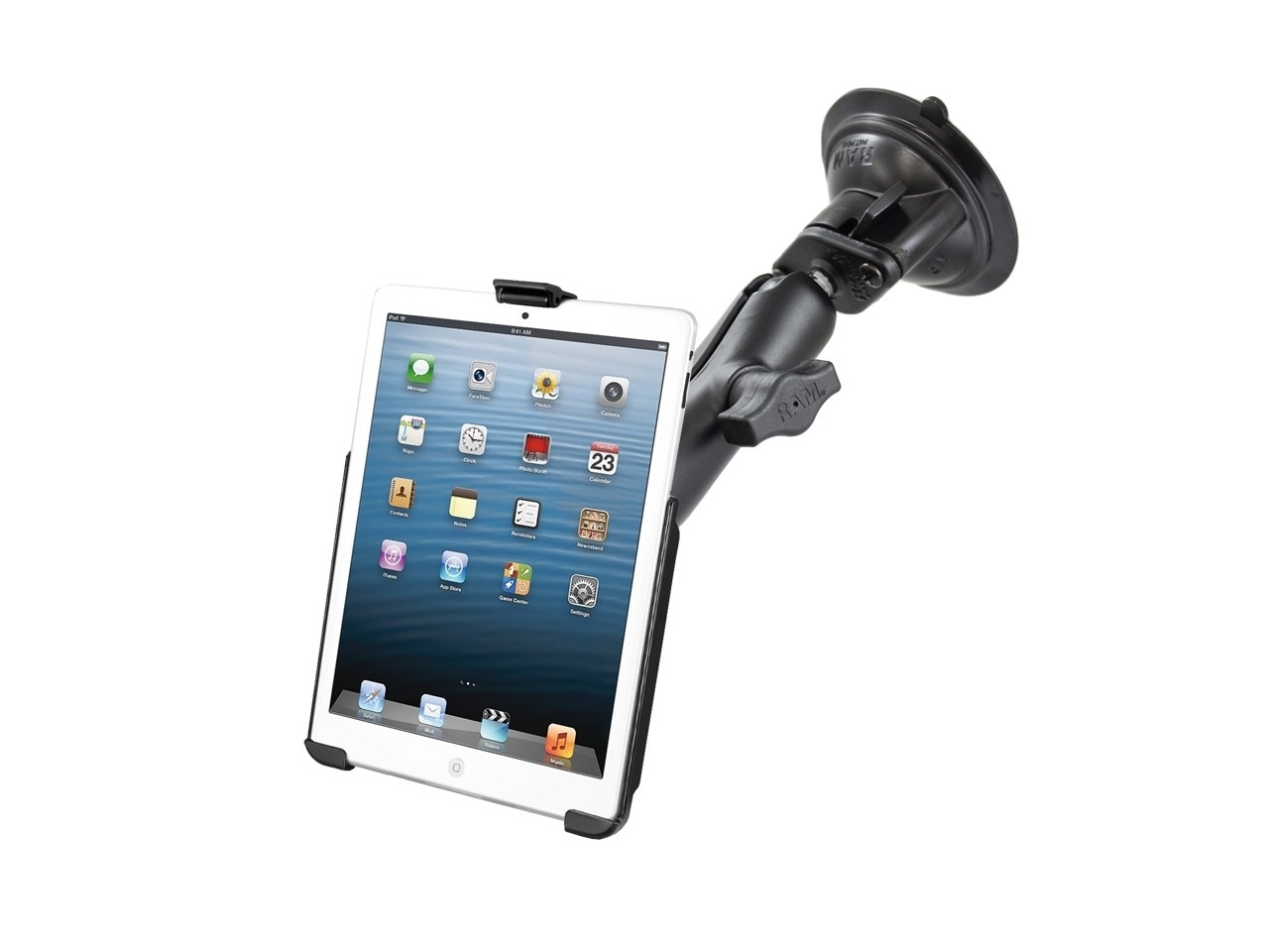 Hinweis: abgebildete Geräte gehören nicht zum Lieferumfang. Es wird ausschließlich die Ram Mount Saugfusshalterung für das Apple iPad mini 1, 2, 3 geliefert!