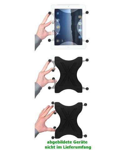 Ram Mount X-Grip III passt u.a. für folgende Geräte: Apple iPad 4 (auch mit Lightning Connector) / 3 / 2 / 1, Asus EEE Pad / Eee Pad Transformer, Samsung Galaxy Tab 8.9 / 10.1 / Tab2 10.1, sowie alle Geräte mit folgenden Min.-/Max.-Abmessungen: