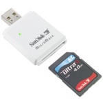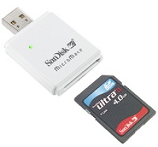 SanDisk SDHC Karte mit 4 GB Speicherkapazität inkl. MicroMate USB 2.0 Lesegerät.