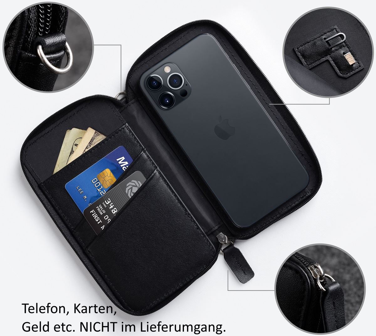 1 Fach für das Smartphone (Maximalgröße des Geräts: 15,7 x 8,1 x 0,79 cm)2 große Fächer für Karten
