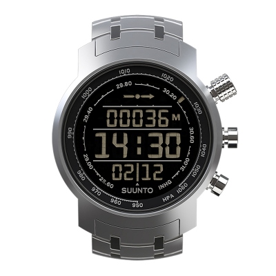 Ob beim Wandern, Skifahren, Snowboarden oder im Aufzug eines Bürohauses, die Höhenmesser Funktion in der Suunto Elementum Terra Steel zeichnet alle relevanten Informationen über die jeweilige Aktivität auf. Die Aufzeichnungen können als Höhenprotokolle, einschließlich der während der Tour maximal erreichten Höhe gespeichert werden. Außerdem zeigen die Protokolle die Summe der kumulierten Auf- und Abstiege der jeweiligen Unternehmung.