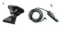 | 1) Frontscheibenhalterung 2) Autoladegerät |
