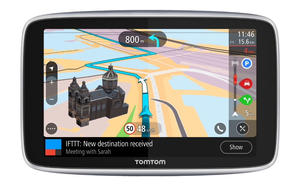 IFTTT-Integration: Synchronisieren Sie Ihren Thermostat, Ihr Garagentor und Ihre Beleuchtung sowie virtuelle Assistenten, Termine und mobile Geräte über die IFTTT-Funktion des TomTom GO Premium (5 Zoll), für eine sorgenfreie Abfahrt und einen warmen, freundlichen Empfang bei der Rückkehr nach Hause.