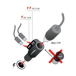 Laden Sie mit dem TomTom High Speed Multi Ladegerät bis zu 3 Geräte gleichzeitig auf. Passend für USB Geräte wie Mobiltelefone und Navigationsgeräte sowie Hochspannungsgeräte wie beispielsweise ein DVD System für das Auto. Der 2.1 Ampere Port ist besonders geeignet für extra schnelles Aufladen von USB-Geräten mit hohem Stromverbrauch wie dem iPad. Für optimalen Empfang Ihres TomTom Navigationsgeräts verwenden Sie original TomTom Zubehör.