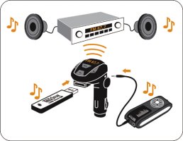 - Musik von jedem MP3-Player zum Autoradio funken: Line-In Anschluss für externe Soundquellen wie MP3- oder CD-Player über 3.5 mm Klinkenbuchse