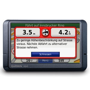 Neben detaillierten Straßenkarten und Abbiegehinweisen mit Ansage von Straßennamen bietet das nüvi 465Tpro außerdem auch spezielle Routenoptionen für LKWs. So können bei der Navigation für Ferntransporte relevante Einschränkungen (z. B. Höhe, Gewicht, Länge, Breite oder auch der Transport von Gefahrgut) berücksichtigt werden. Die in diesem Zusammenhang eingegebenen Abmessungen bzw. Transporteinschränkungen werden bei der Navigation mit dem nüvi 465Tpro exakt berücksichtigt. Auch bei Fahrten mit mehreren Zwischenstationen kann das nüvi 465Tpro eine optimierte Strecke zwischen den verschiedenen Zielen berechnen. Zudem kann sich der Fahrer jederzeit mittels der Funktion ?Wo bin ich?? die genaue Position seines Aufenthaltsorts anzeigen lassen. Ebenso die nächstgelegenen Krankenhäuser, Polizeireviere, Tankstellen, Straße und Kreuzung.Gefahrenstellen sicher umfahren