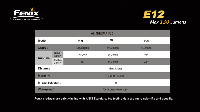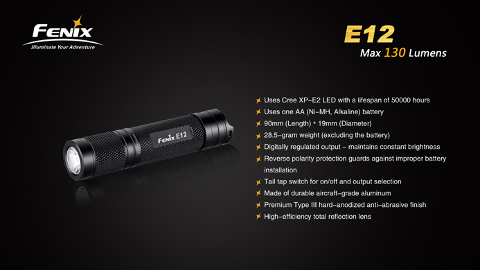 Fenix E12 LED Taschenlampe mit 130 Lumen