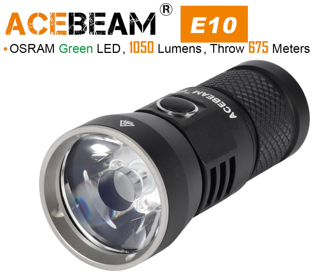 Acebeam E10, OSRAM grünlicht LED, 1050 Lumen, 675m Leuchtweite - Wiederaufladbare LED Taschenlampe