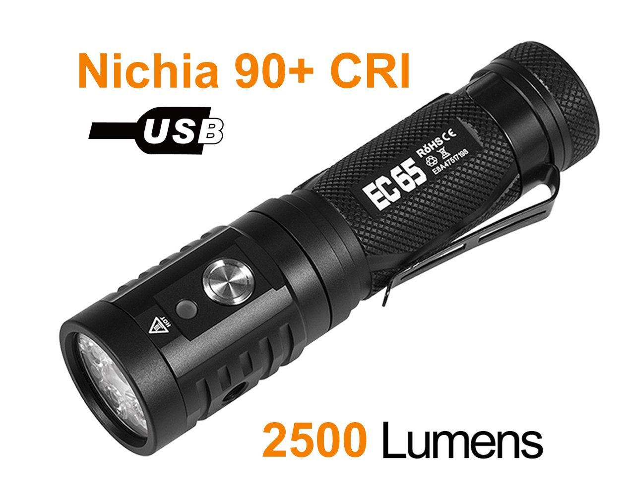 Acebeam EC65 - Wiederaufladbare LED Taschenlampe, 2500 Lumen, Nichia 90+ CRI LED, IMR21700 Akku