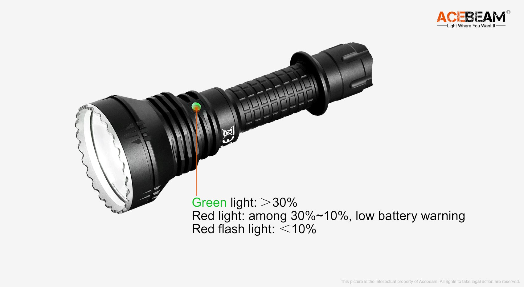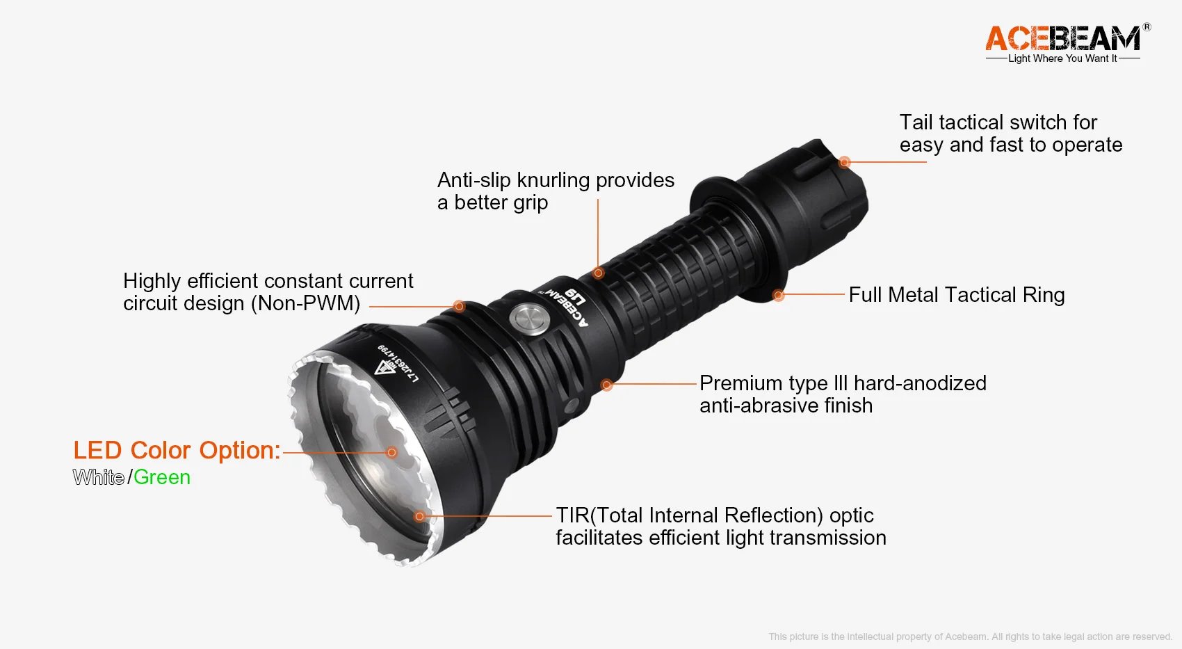 Acebeam L19, Taschenlampe, grüne NM1 LED, 2200 Lumen, 1520 Meter (Ohne Akku)