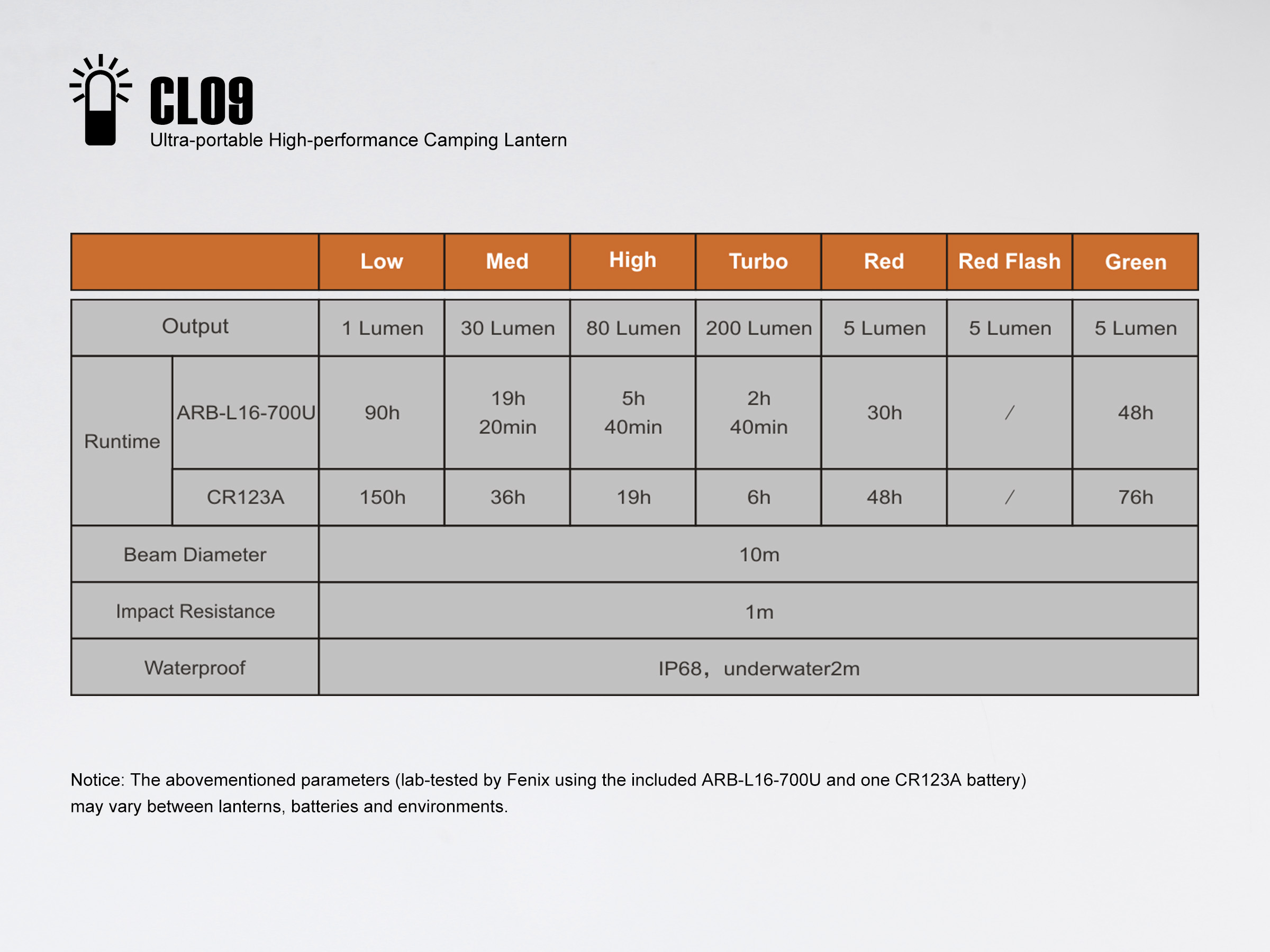 Hinweis: Die Werte wurden im Fenix Labor ermittelt und können je nach Lampe und Umgebung geringfügig variieren