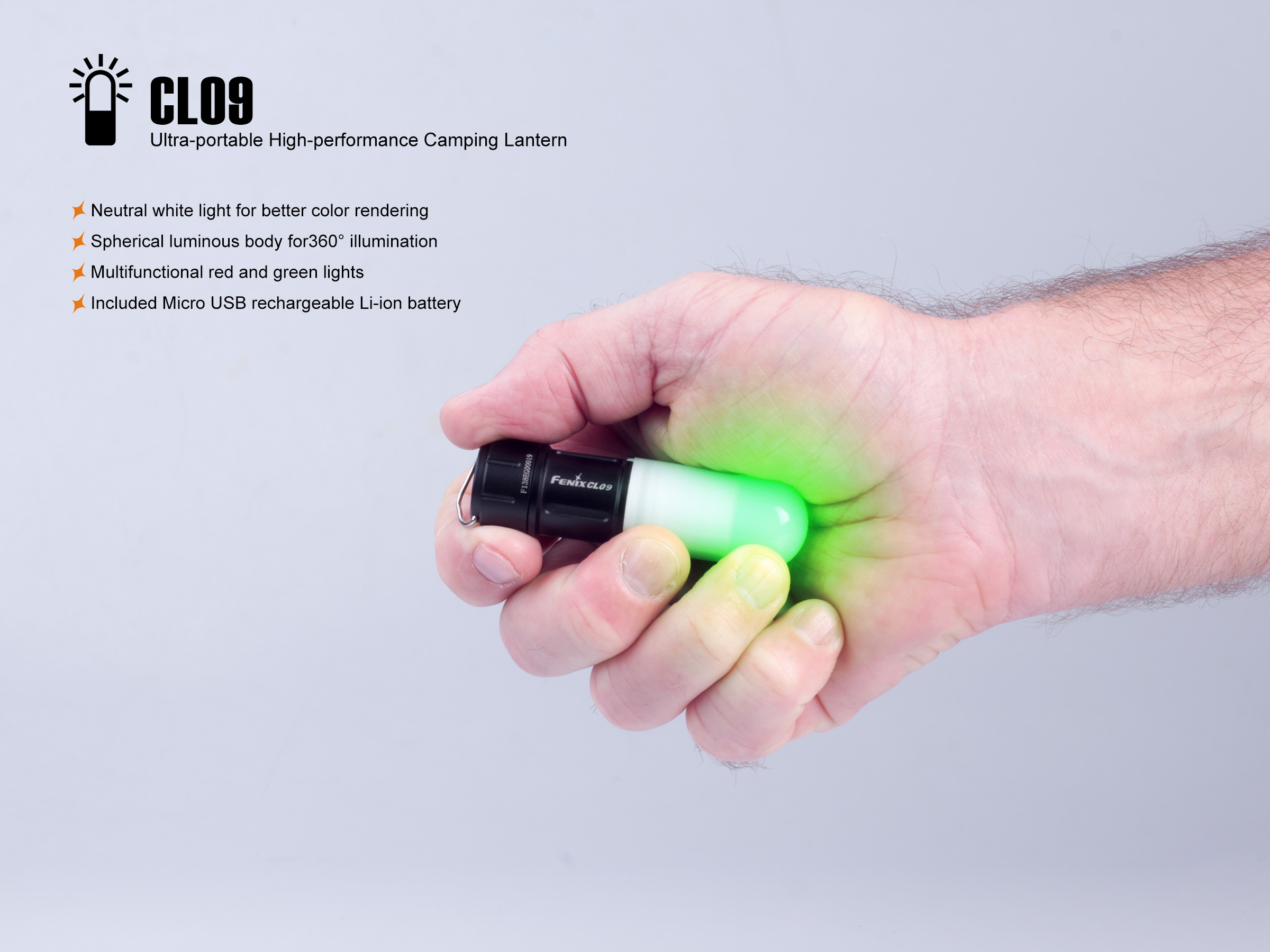 Sie haben nun folgende Möglichkeiten:Die Fenix CL09 ist eine wiederaufladbare Campingleuchte mit Sicherheitslicht-Funktion. Die Fenix CL09 Campingleuchte hat ein neutrales weißes Licht mit sehr hellen 200 Lumen, ein rotes Dauerlicht, ein rotes Blinklicht und ein grünes Licht. Die Fenix CL09 bietet mit dem beiliegenden Akku, der über ein microUSB Kabel wie ein Smartphone geladen wird, eine Laufzeit von 150 Stunden. Mit den vier Leuchstufen kann man die Fenix CL09 optimal in der Helligkeit anpassen. Die Fenix CL09 Campinlampe ist bis -40 Grad kälteresistent, schlagbeständig und wasserdicht. Mit dem Metallbügel und dem magnetischen Boden kann man die Leuchte überall befestigen.